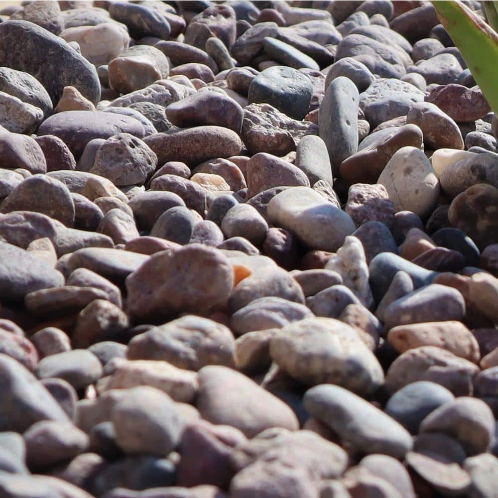 - Each pebble is one of a kind and color hues range from maroons, grays, tan and white