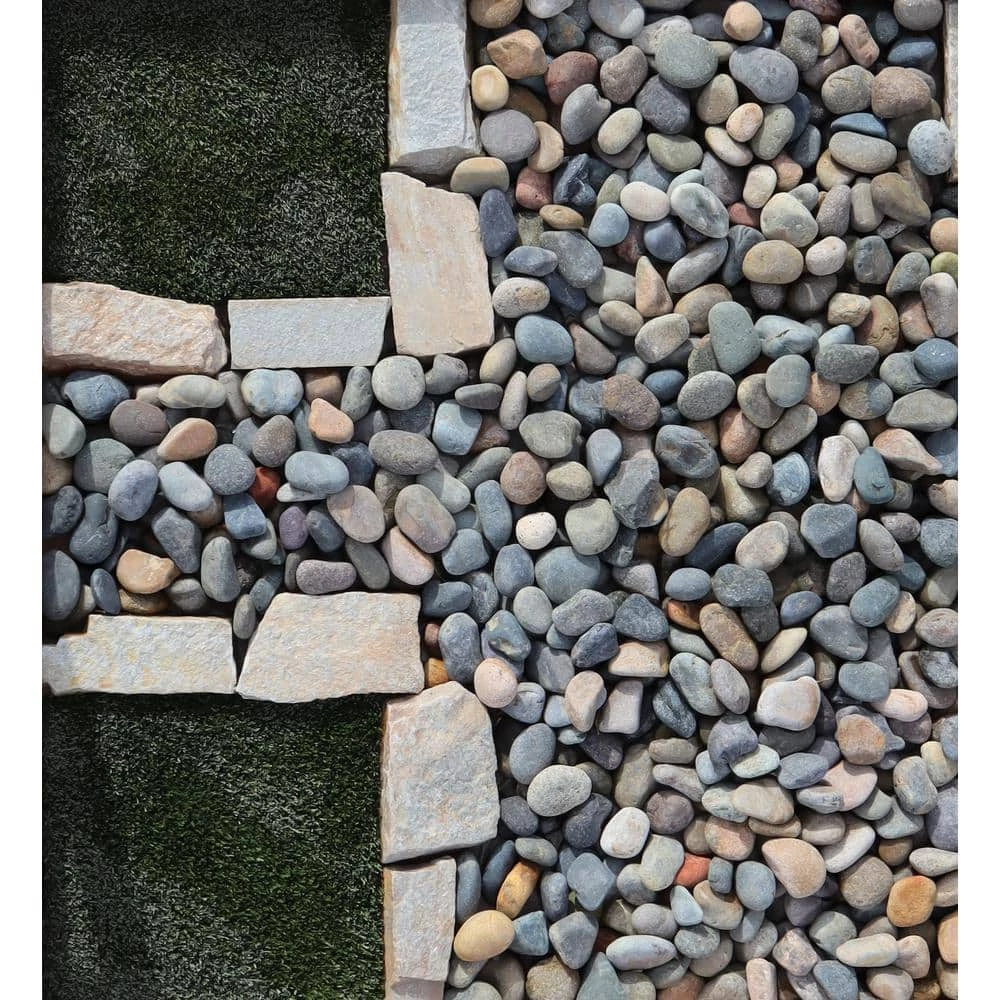 The 5.4 cu. ft. 1 in. to 3 in. Mixed Mexican Beach Pebbles (500 lbs. Mini Sack) comes from the beaches of Baja, Mexico and have been naturally smoothed and tumbled by ocean waves for hundreds of years. These beautiful stones are the perfect material to be used for drought tolerant, water wise dry-scape landscaping and gardening. The color hues range from grey, brown, rust, ivory to charcoal and will create a dramatic, natural affect when used in gardens, ponds and stream beds as well as around trees, walk ways, driveways and patio’s. These stones are easy to spread, protect soil from temperature extremes, restrain the growth of weeds and can also be used to help protect drainage areas from erosion.