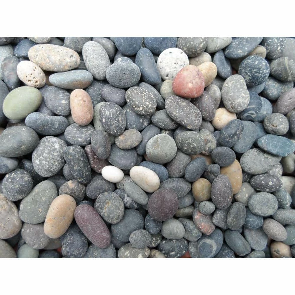 The 3/8 in. to 5/8 in. Mixed Mexican Beach Pebbles (500 lb. Mini Sack) comes from the beaches of Baja, Mexico and have been naturally smoothed and tumbled by ocean waves for hundreds of years. These beautiful stones are the perfect material to be used for drought tolerant, water wise dry-scape landscaping and gardening. The color hues range from grey, brown, rust, ivory to charcoal and will create a dramatic, natural affect when used in gardens, ponds and stream beds as well as around trees, walk ways, driveways and patio’s. These stones are easy to spread, protect soil from temperature extremes, restrain the growth of weeds and can also be used to help protect drainage areas from erosion.