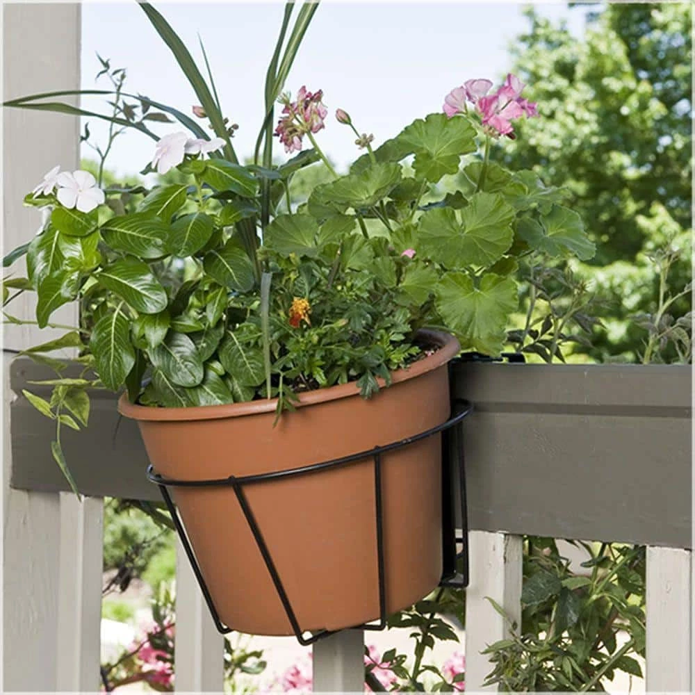 This Gilbert and Bennett 10 in. metal adjustable flower pot holder is the perfect way to display your flowers and plants. The adjustable bracket allows the pot holder to fit on a flat balcony as small as 3 in. W and as big as 5.5 in W. Its rust-resistant metal is built to last, and it is constructed to hold any flower pot up to 10 in. W. The holder includes 6 screws, 2 adjustable brackets, and also contains a non-tip bumper at the base to keep your pot upright and level. So easily adjust the flower pot holder to your needs, place your flower pot in the holder, and enjoy a beautiful display.