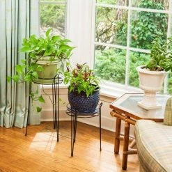 Create a lovely, welcoming display with a potted plant, flowering foliage, or other eye-catching touches of nature’s beauty with Gilbert & Bennett’s wide selection of slender and graceful plant stands. Indoors, the plant stands bring harmony and simple elegance to any living room, entry hall, office, or bedroom. Outdoors, they add eye-catching charm to a front porch, patio, back deck, or garden. Gilbert & Bennett plant stands are available in a wide range of sizes from 15 in. to 30 in. tall. The size ranges are designed to suit a variety of needs or to be grouped together in multiple sizes to add depth to a garden display. The plant stand offers a design that can accommodate potted plants with up to a 10 in. base. The strong steel construction makes them weather-resistant as well as highly portable. Easy to move indoors in the fall and back outdoors for the spring, Gilbert & Bennett plant stands are designed to be attractive and simple to use, with little to no setup work required.