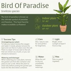 The Giant White Bird of Paradise (Strelitzia nicolai) is a LIVELY ROOT favorite. It’s a striking plant that grows best outdoors, where it can bathe in direct sunlight. Perfect for inside, on the patio or outside in your garden.
