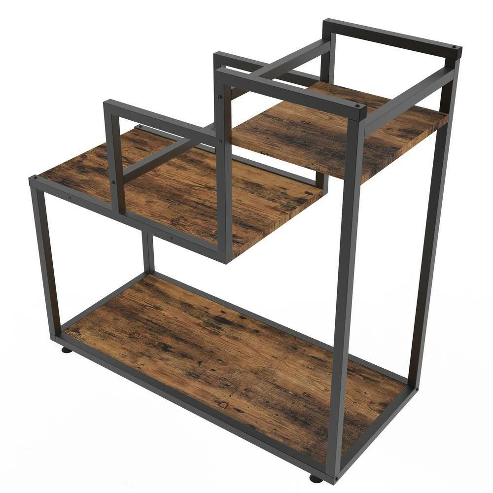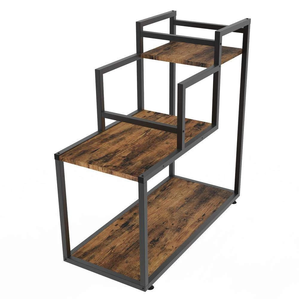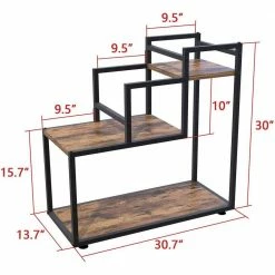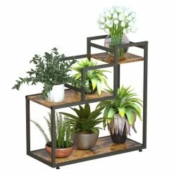 This is a multi-functional 3-layer flower rack, suitable for balcony, living room, hall, bedroom, study. It is made of rust-proof steel and high-quality MDF board. It is strong and durable, and it is rust-proof and waterproof. This flower rack has outstanding load-bearing capacity and can hold up to 30 lbs. in a single layer. Each of the 4 steel columns is equipped with a footpad to protect the floor from scratches and balance it.