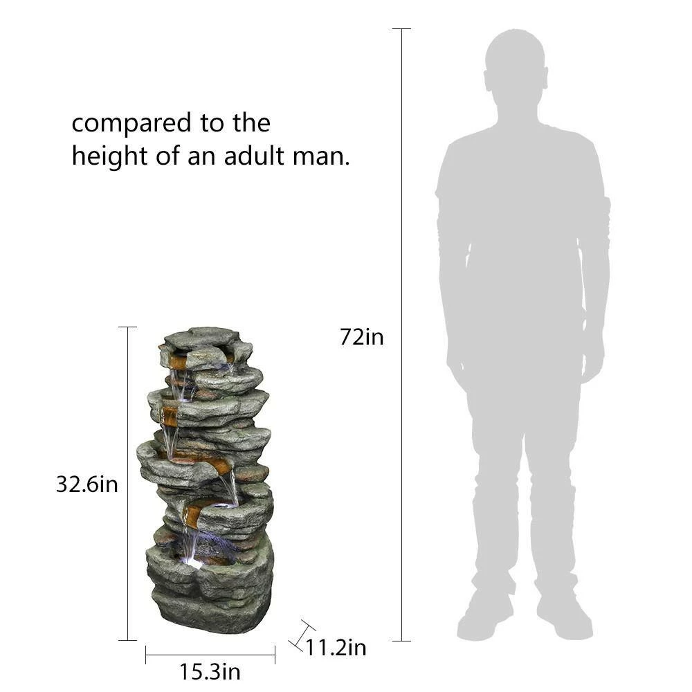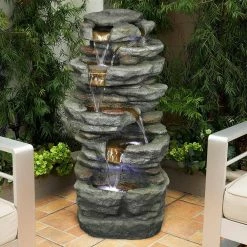 This is a 5 layer resin fountain that is very attuned to nature and helps you enjoy the sound of nature with the soothing and peaceful sound of water. This outdoor fountain is perfect for decorating your garden, yard, deck, porch or yard. Resin and glass fiber structure is weatherproof, rust-proof and durable for long service life. LED lights are installed in the fountain floor to highlight the movement of the trickling water. Complete the installation according to the instructions for normal use.