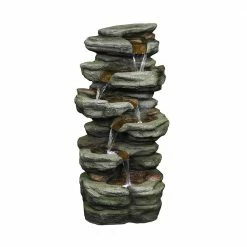 This is a 5 layer rock fountain that is very attuned to nature and helps you enjoy the sound of nature with the soothing and peaceful sound of water. This outdoor fountain is perfect for decorating your garden, yard, deck, porch or yard. Resin and glass fiber structure is weatherproof, rust-proof and durable for long service life. LED lights are installed in the fountain floor to highlight the movement of the trickling water. To use, simply connect the pump to the hose, plug it into an outdoor outlet, and fill the underlayer with water.