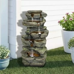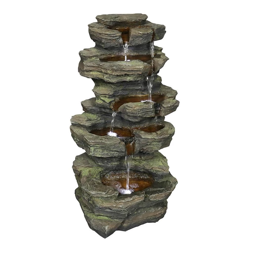 This is a 5 layer resin fountain that is very attuned to nature and helps you enjoy the sound of nature with the soothing and peaceful sound of water. This outdoor fountain is perfect for decorating your garden, yard, deck, porch or yard. Resin and glass fiber structure is weatherproof, rust-proof and durable for long service life. LED lights are installed in the fountain floor to highlight the movement of the trickling water. Complete the installation according to the instructions for normal use.