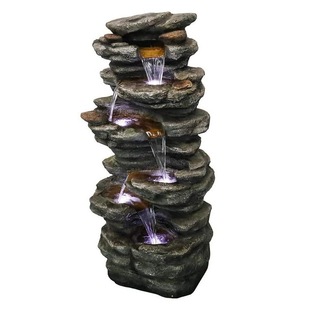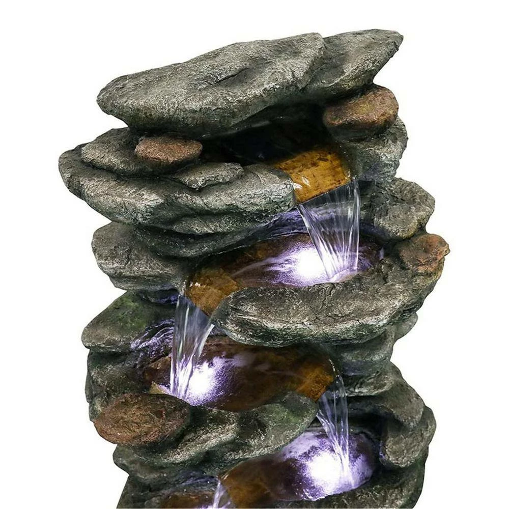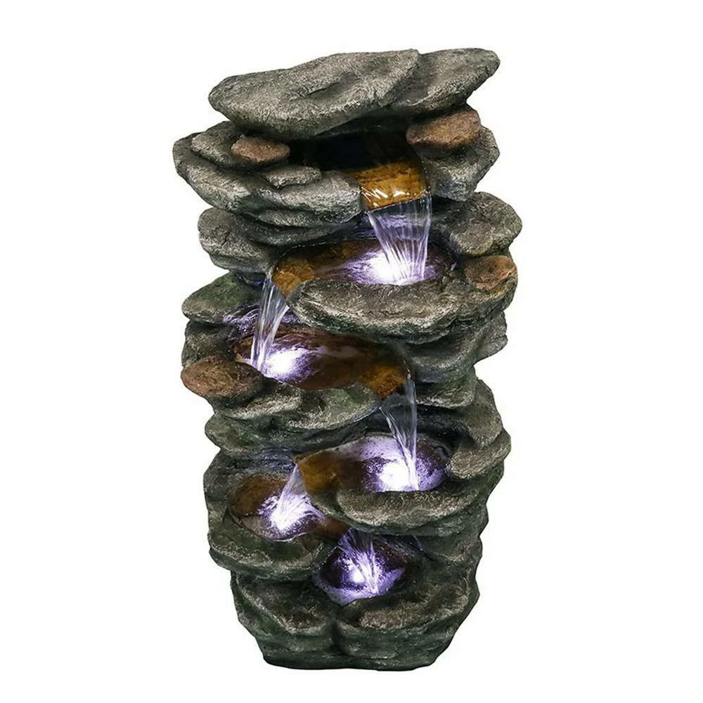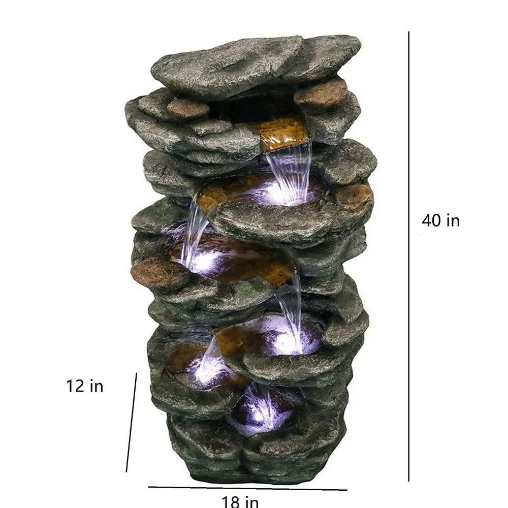 This is a 6 layer resin fountain that is very attuned to nature and helps you enjoy the sound of nature with the soothing and peaceful sound of water. This outdoor fountain is perfect for decorating your garden, yard, deck, porch or yard. Resin and glass fiber structure is weatherproof, rust-proof and durable for long service life. LED lights are installed in the fountain floor to highlight the movement of the trickling water. Complete the installation according to the instructions for normal use.