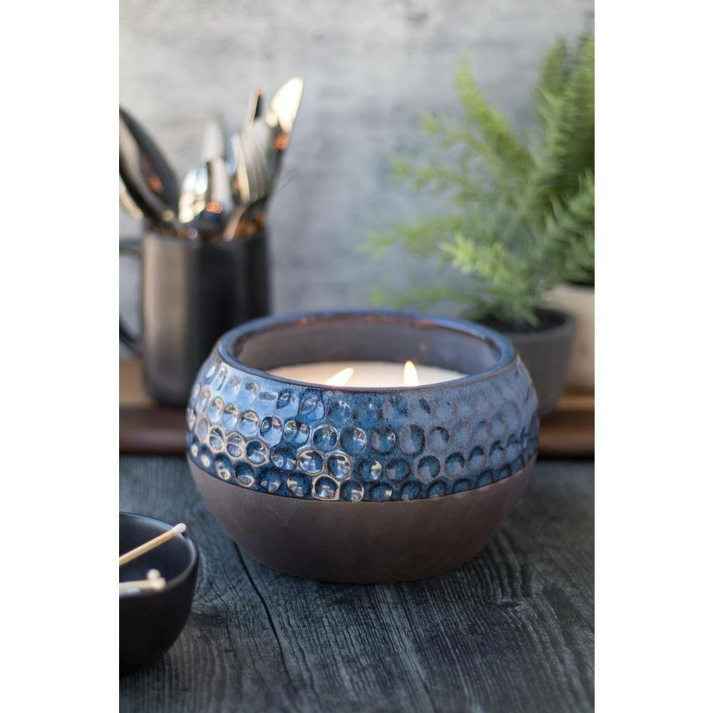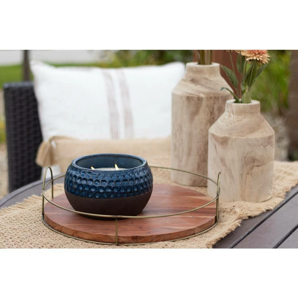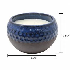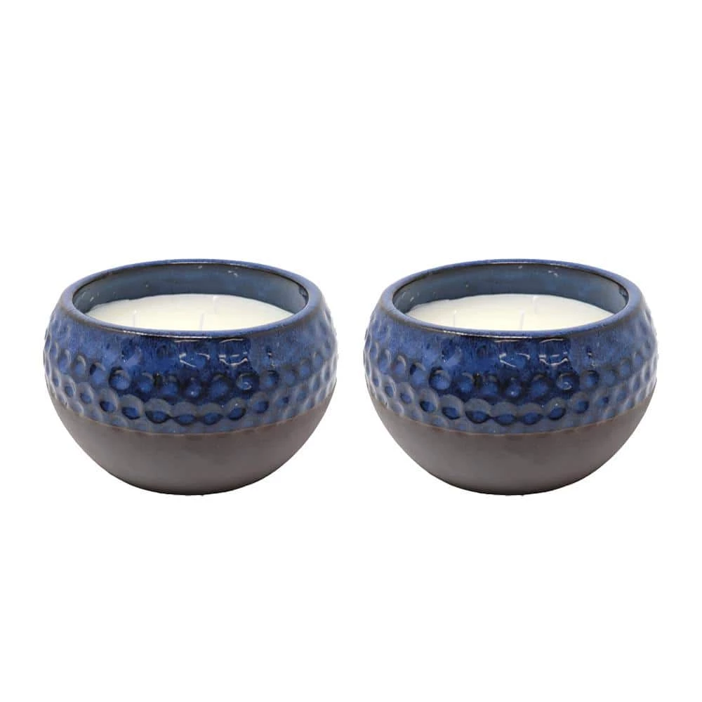 “Add a beautiful statement piece to your outdoor decor with our Marilee Glazed Citronella Candlez. The contrast of the glossy hammered blue glaze on the top half of the ceramic pot and the dark, matte blue of the bottom half creates an eye-catching piece that you’ll love to display. The 5 wicks mean that this large citronella candle not only throws off extra candlelight to brighten up your patio space but also will have a more even burn! Place this Patio Essentials 50-ounce 5-Wick Blue Glazed Ceramic Citronella Candle, 2-Pack in the center of your outdoor dining table with some smaller outdoor candles candles to create a welcoming centerpiece, or use them to add a little glow to a gathering area. For maximum coverage, pair these citronella candles with other citronella products spaced 18-36 inches apart around the perimeter of your outdoor space.”