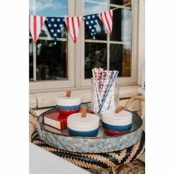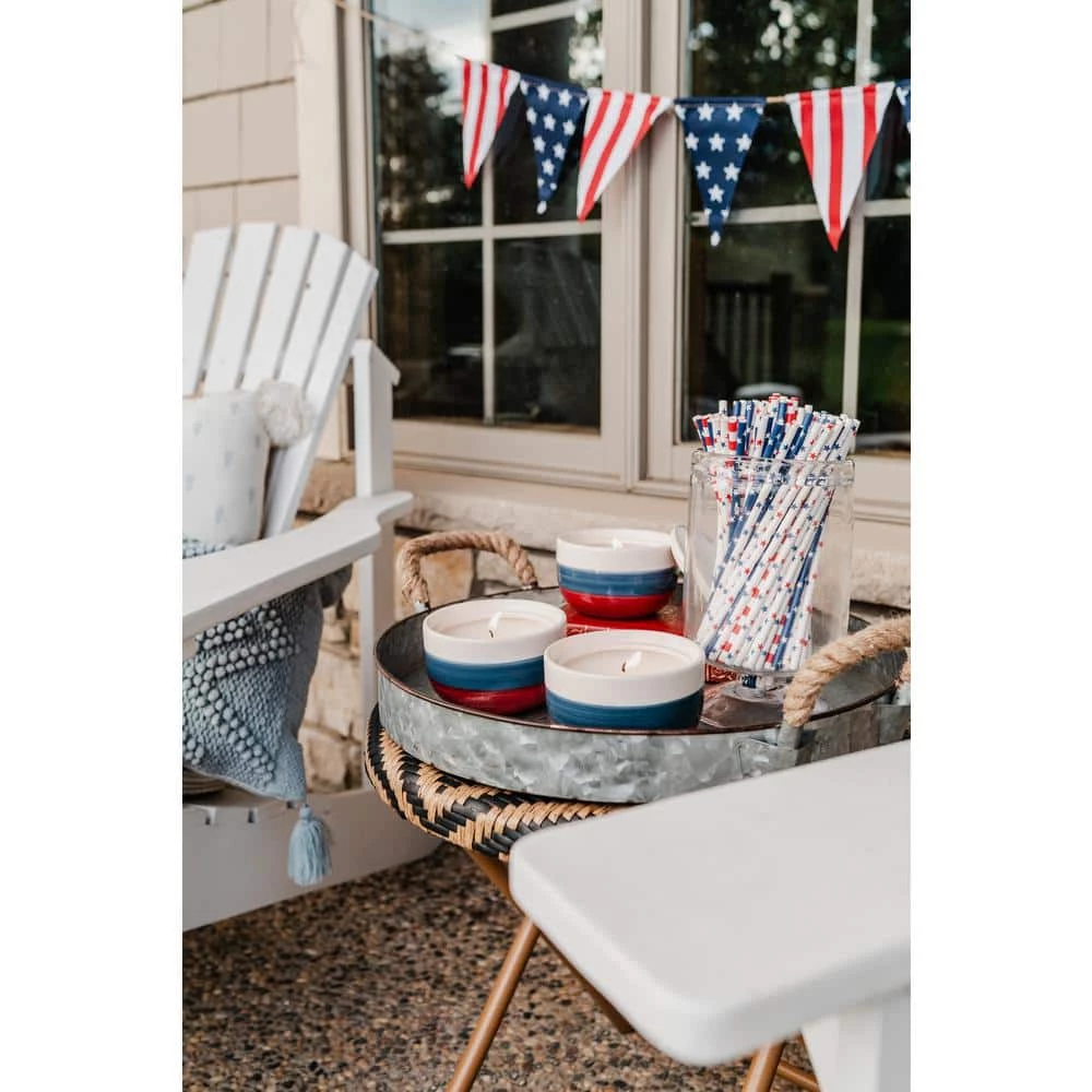 Add a cozy glow to your picnic table this 4th of July with our 6 oz. Patriotic American Striped Ceramic Citronella Candle, 3-pack. You’ll love the simple and patriotic decorative touch that these medium-sized citronella candles add to your patio this summer. Don’t forget to pair these with some of the other citronella candles and torches in our patriotic collection. Space them 18-36 inches apart around the perimeter of your outdoor space for maximum coverage.