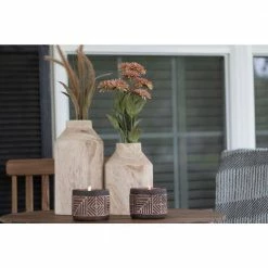 Create a dreamy outdoor space that soothes your wanderlust with our Ome Geometric Citronella Candles. The textured, hand-carved look of this outdoor citronella candle adds an artisan charm to your patio or deck that will make you feel like you’re lounging in an Mesoamerican paradise! Perfect as a table centerpiece or placed on a small side table, this small citronella candle is a stylish way to light up your evenings with a warm, cozy glow. Add to the old world charm-style of this Patio Essentials 6-ounce Geometric Carved Citronella Candle, 3-Pack by pairing them with any of our other wanderlust-inspired citronella candles and tiki torches and spacing them 18-36 inches apart around the perimeter of your outdoor space for maximum coverage.