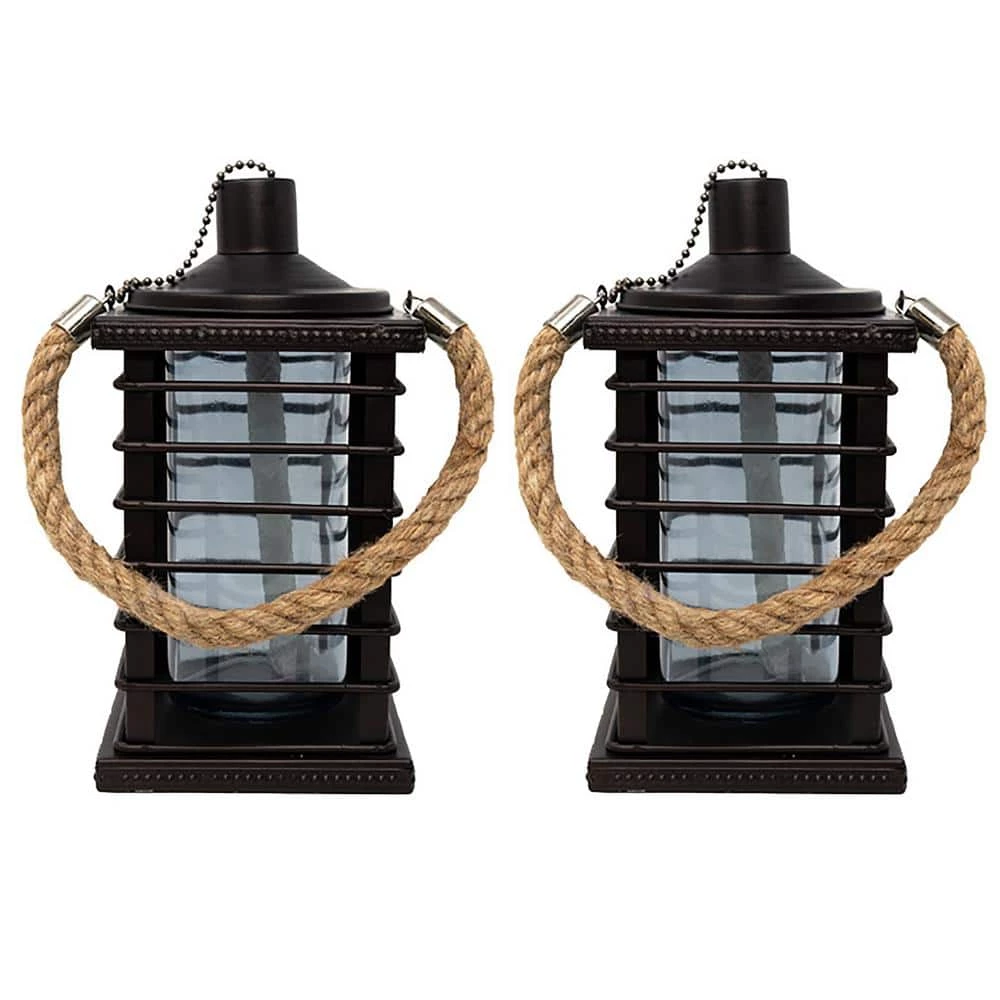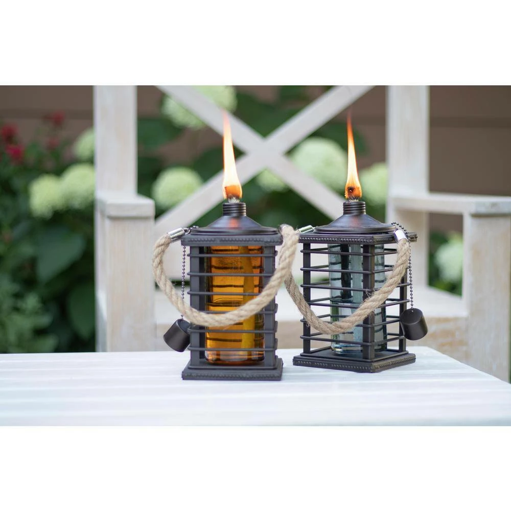 You’ll love the versatile style these tabletop torches bring to your space. The straw rope handle and black metal cage detailing give them a unique look that works with any style. Add our citronella scented or Scatterbug torch fuels to use outdoors as a part of your barrier of protection or use an indoor friendly torch fuel like our Nature’s Flame to take these torches indoors. for best results, add a few of these torches to your cart and space them 18 in. to 36 in. apart around the perimeter of your outdoor space. Then fill them with our PATIO ESSENTIALS Citronella-Scented or Scatterbug torch fuel to help keep mosquitoes away.