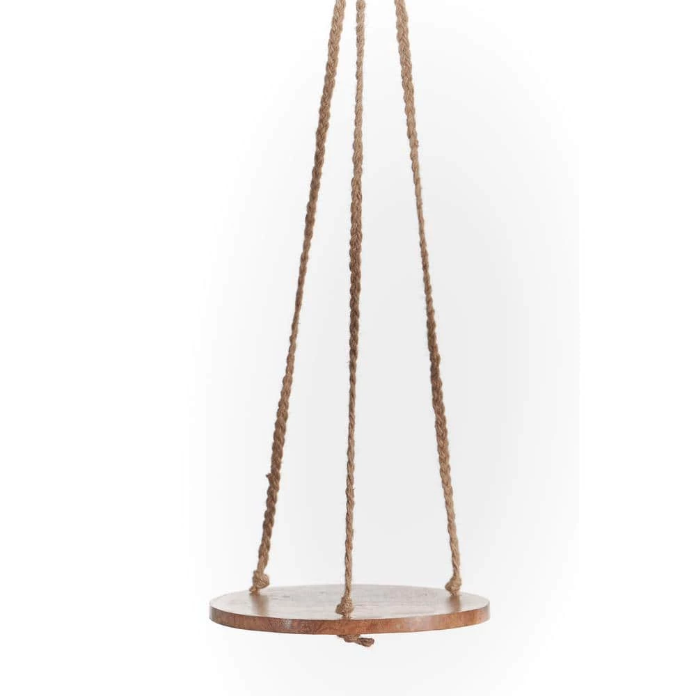 Primitive Planters 10 in. Hanging Wooden Round is made from a durable Pecan wood, stained. A 30 in. plant hanger is made from jute cording. This is a unique way to display a potted plant or knickknacks. Use with our S-Hook for easy hanging. Can hang from ceiling off of a ceiling hook or hang off of a wall bracket.