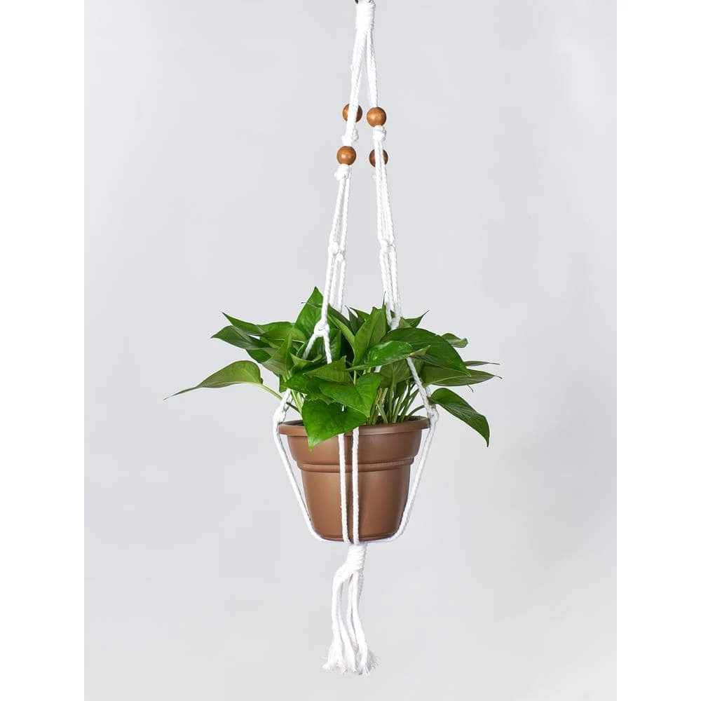30 in. Beaded Cotton Plant Hanger. Dress up your indoor houseplants with our natural plant hanger. This plant hanger fits pots and baskets 6 in. to 8 in.