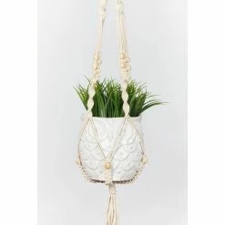 Primitive Planters 42 in. Beaded Cotton Woven Plant Hanger is 1 of our most popular hangers. Made with 100% woven cotton and has multiple decorative beads. Holds pots ranging from 7 in. to 12 in., not weighing more than 20 lbs. Pair up with Primitive Planters S-Hooks for easy hanging. Plant hanger only, pot and plant not included.