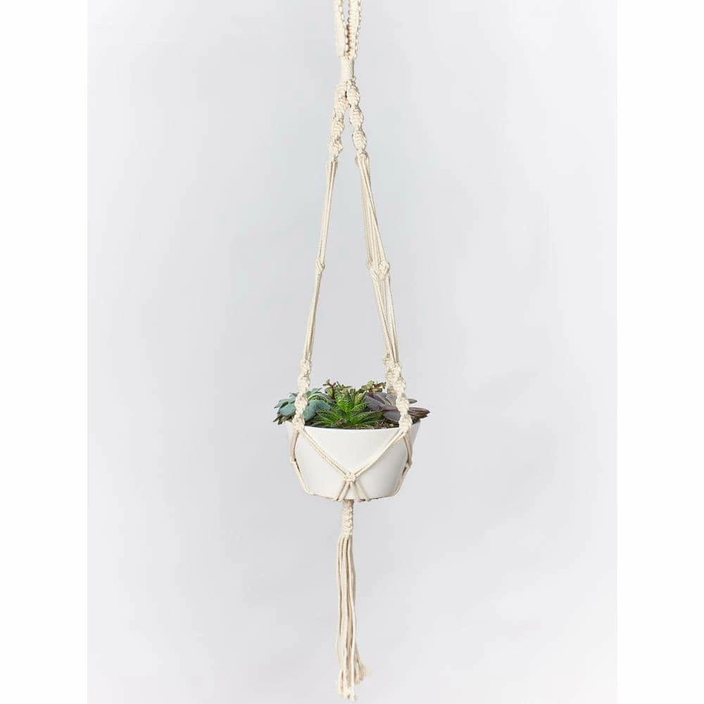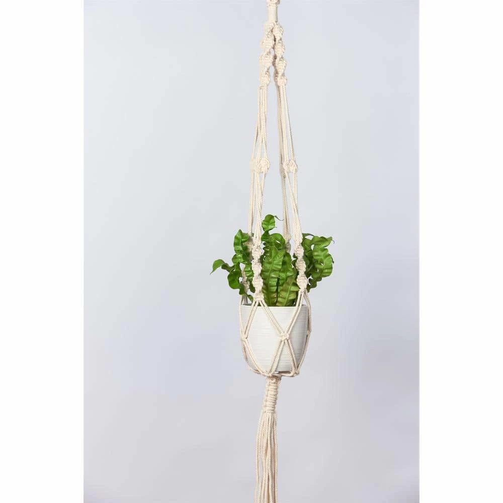 Primitive Planters 42 in. Ivory Woven Cotton Twisted Cord Plant Hanger