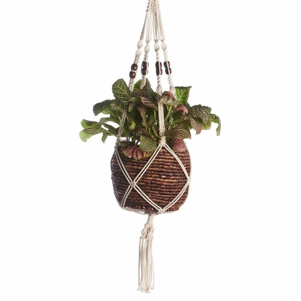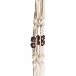 Primitive Planters 42 in. Brown Beaded Cotton Woven Plant Hanger is made with 100% woven cotton and has multiple brown decorative beads. Holds pots ranging from 7 in. to 12 in., not weighing more than 20 lbs. Pair up with Primitive Planters S-Hooks for easy hanging. Looks great paired up with our 9307 hanging wooden tray. Plant hanger only, pot and plant not included.