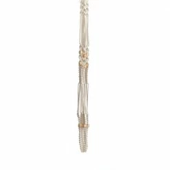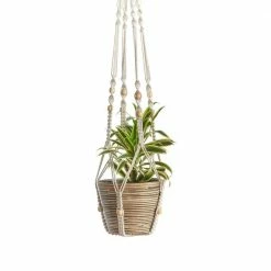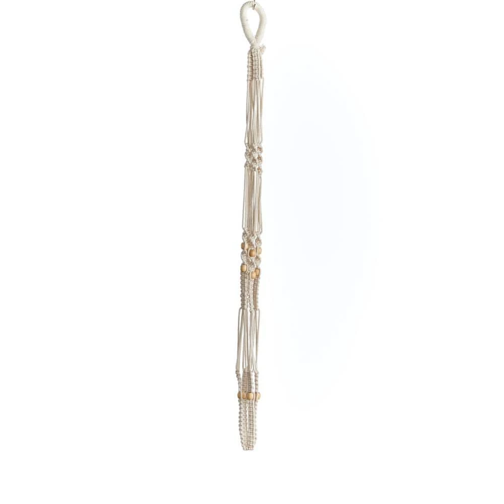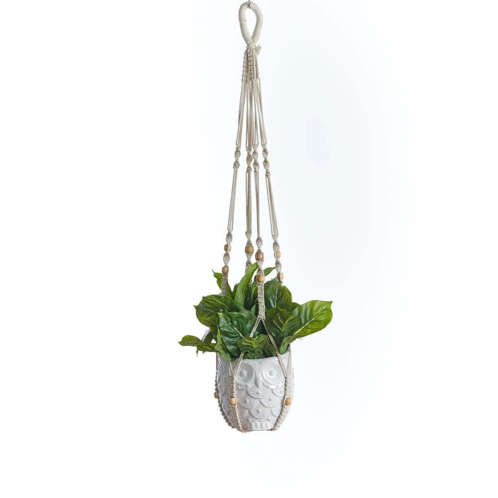 Primitive Planters No Tassel hanger is perfect for those that want a clean look to their plant hanger. Made with 100% woven cotton and has multiple decorative beads. Holds pots ranging from 7 in. to 12 in., not weighing more than 20 lbs. Plant hanger only, pot and plant not included.
