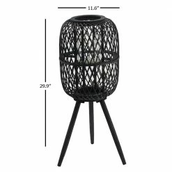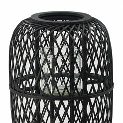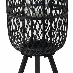A freestanding bamboo lantern with a delightful boho touch. This handsome three-legged lantern is a medium size black display lantern that houses a clear glass hurricane interior. The ideal way to create ambiance in your chic desert cabin, it’s an understated modern touch with a timeless delivery. The material used is consists of 60% bamboo, 20% poplar wood, 10% plywood, and 10% glass. You’ll love the instant and effortless accent this luxurious and stylish piece adds to your home decor.