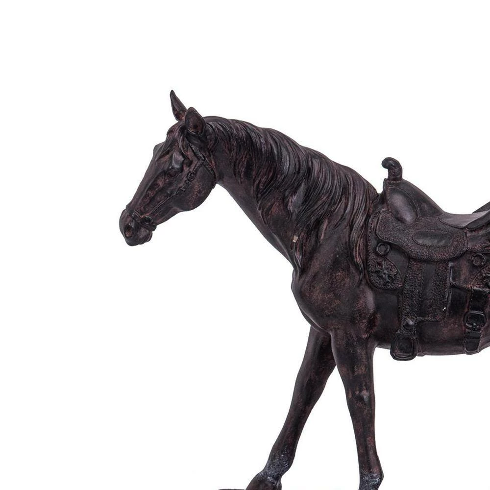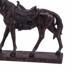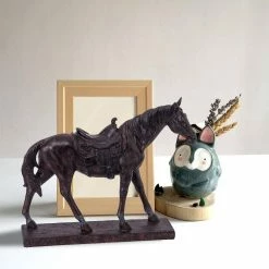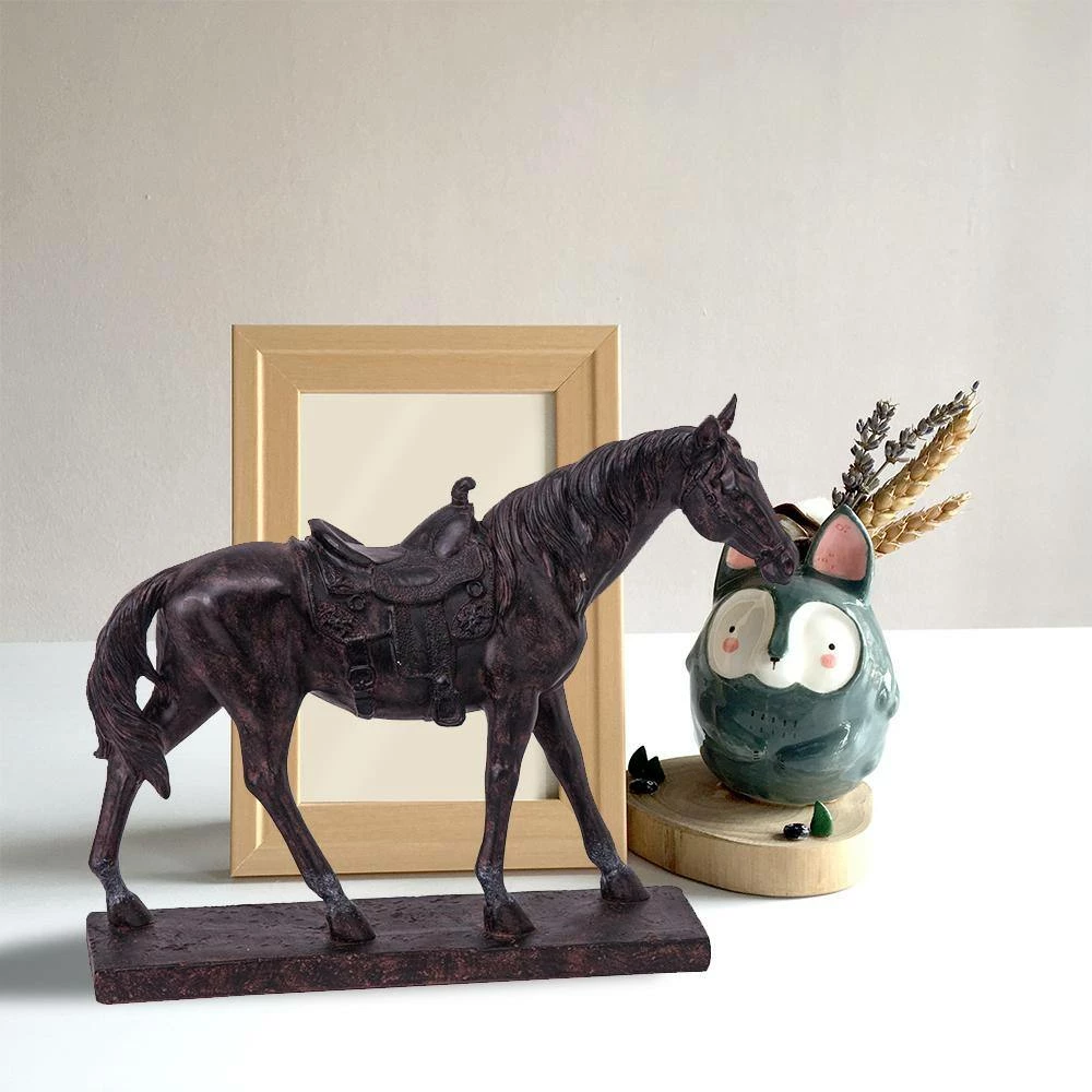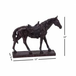 Add beauty and elegance to your existing home decor with the inclusion of this sophisticated sculpture. Generously crafted from polyresin in a weathered white finish, it features a horse with a raised front leg. It is supported by a rectangular base, providing stability and durability. It has a saddle-figure which brings out traditional style into modern one. With its gentle nature and graceful dimensions, our horse represents the traditional Shang dynasty horses of the era. The horse exhibits a multitude of life-like elements that offer the home an elegant aesthetic.