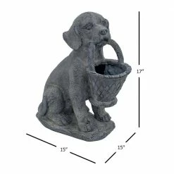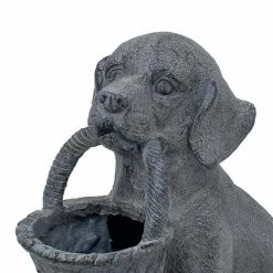 - Planter depicts a dog holding a basket in his mouth