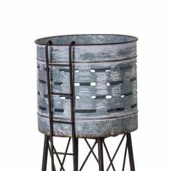 - Accent your garden or patio decor with this galvanized metal water tower planter, it’s the perfect container for faux stems and flowers