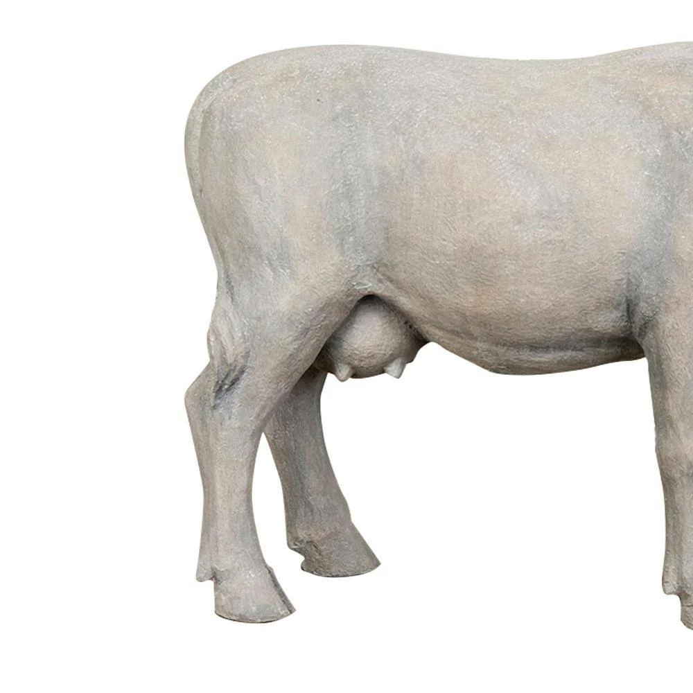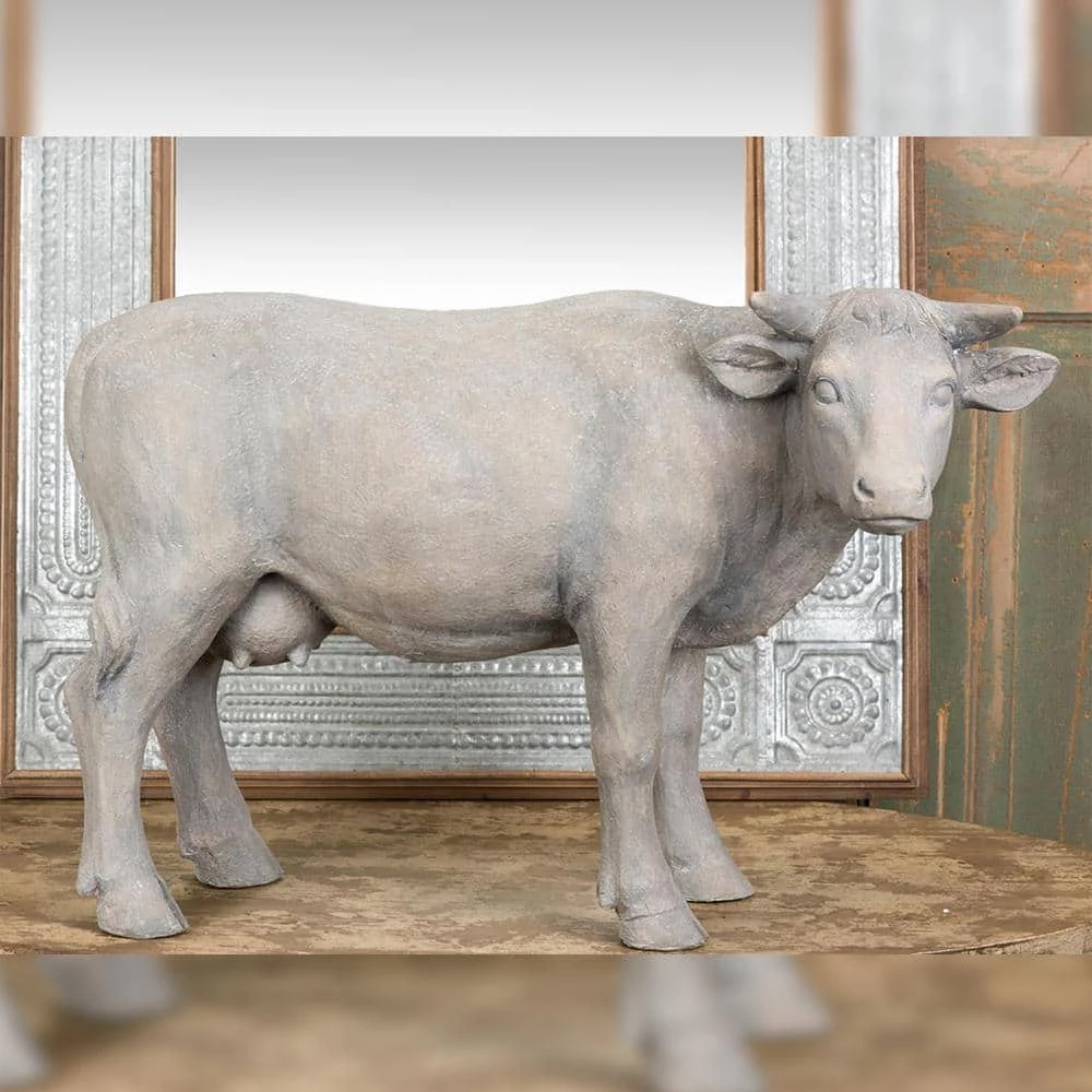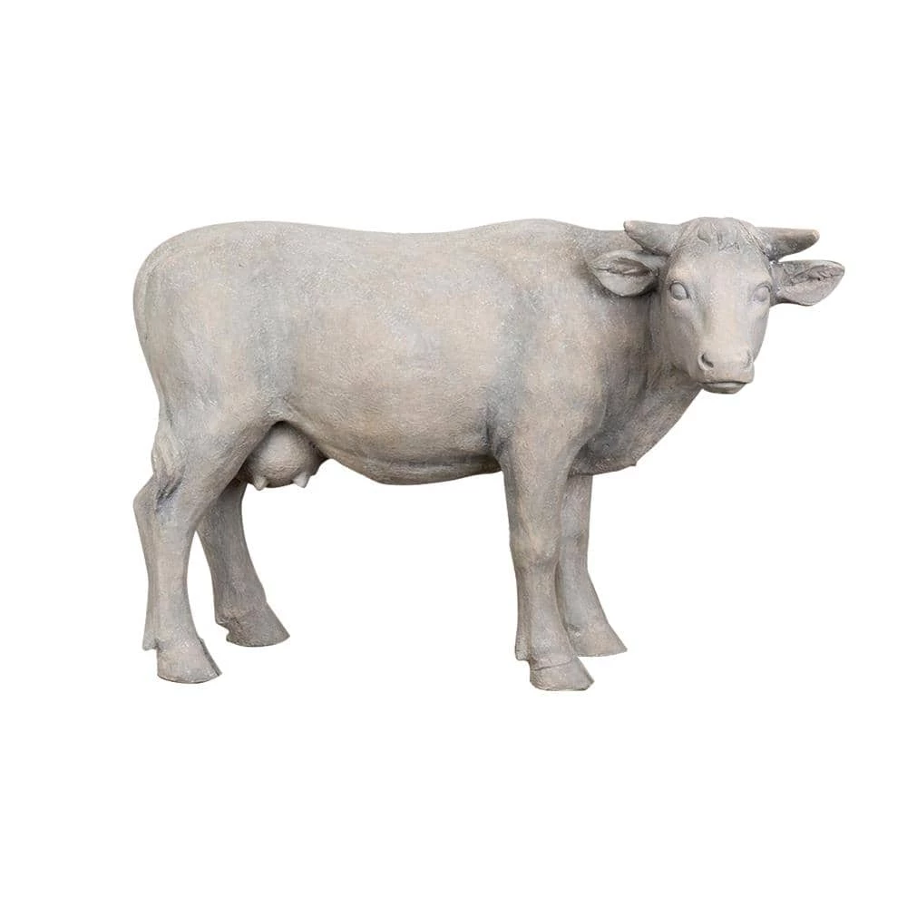 Standing Cow Statue – beautiful cow standing. This statue is a beautiful depiction of one of the most beloved farm animals. Finished in Gray tone, the realistic texture brings this statue to life. He will surely give your yard an outstanding impression of farm life. Perfect for any home! Life-sized cow sculptures are hand-painted cast resin, suitable for indoor or outdoor use. Go ahead, you won’t be sorry!