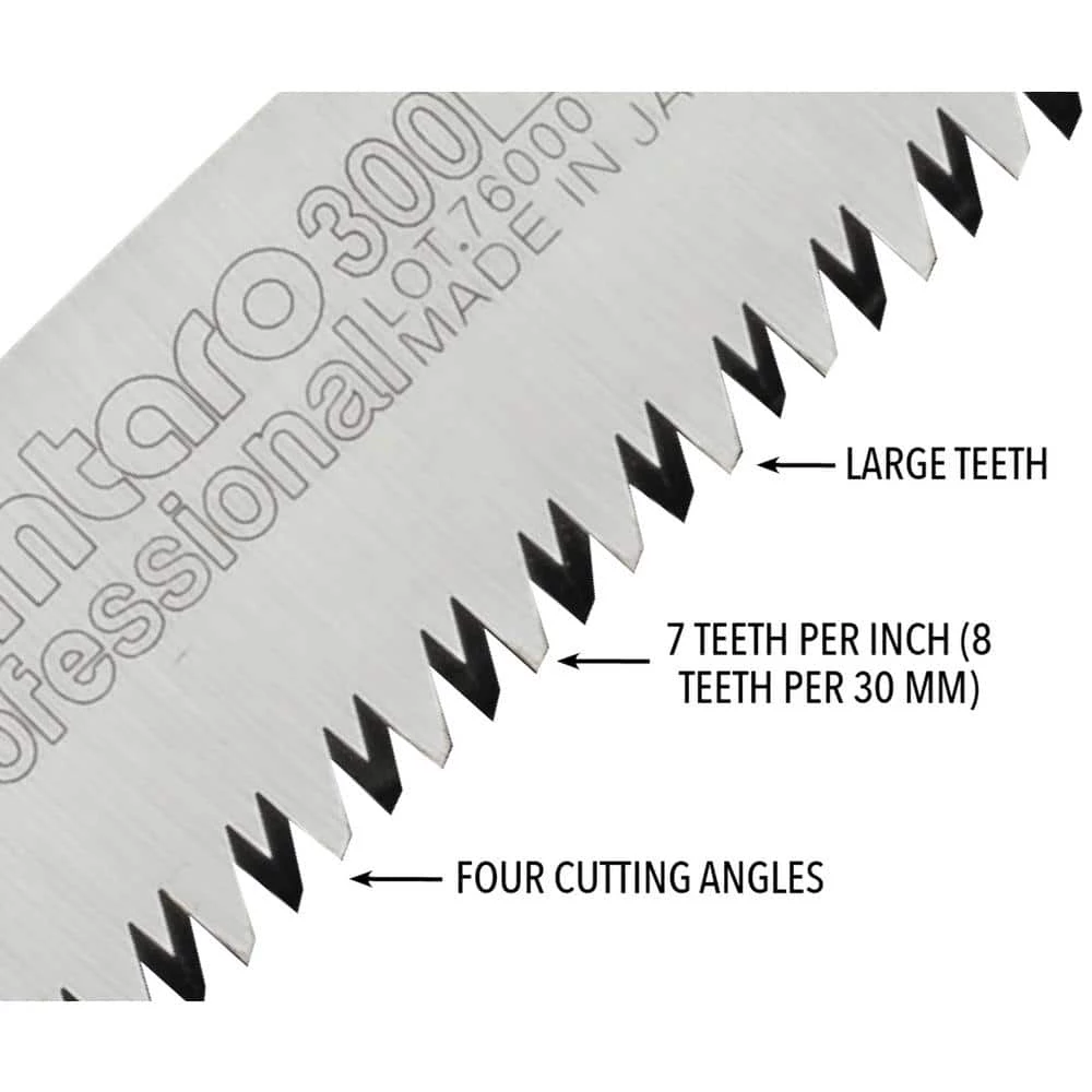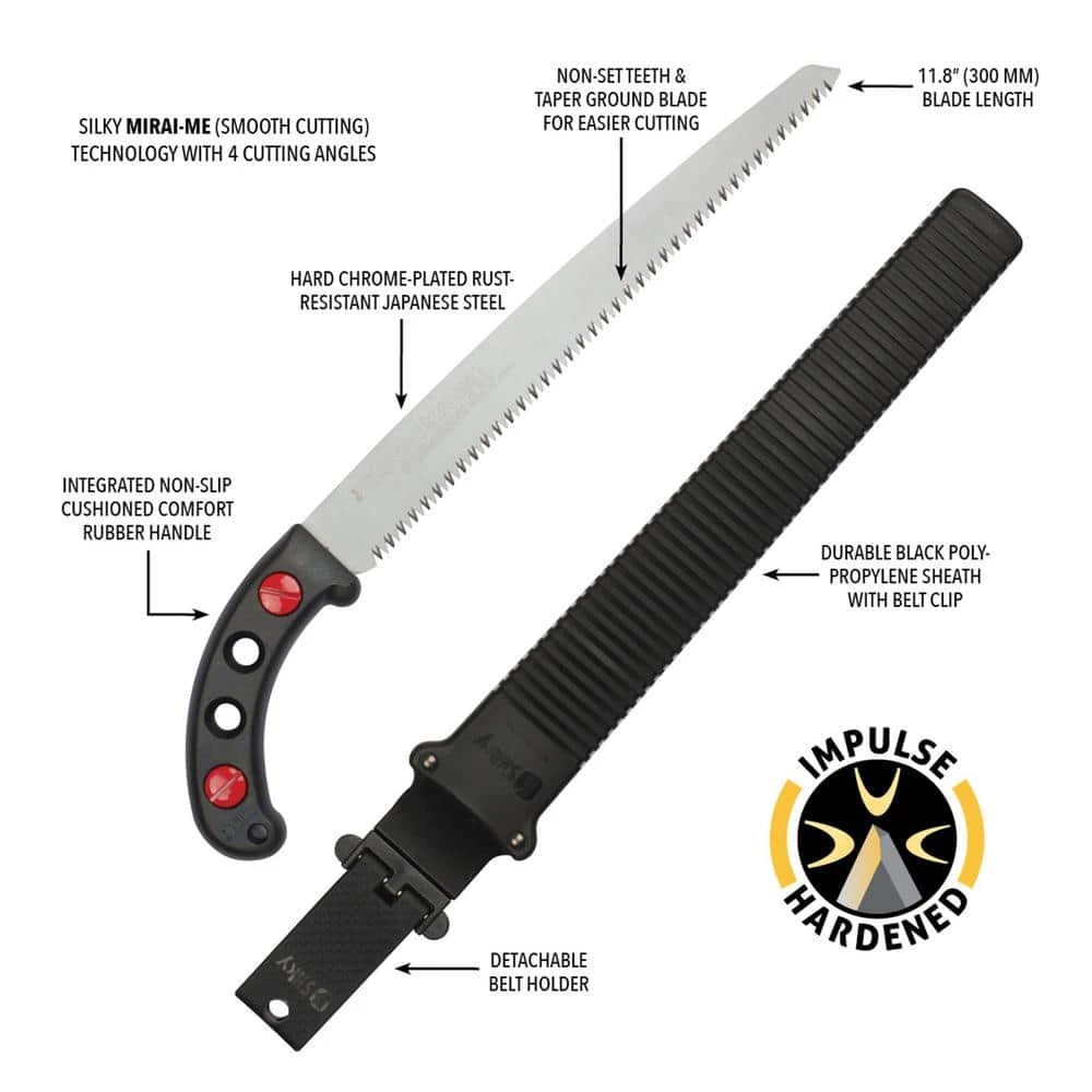 Depending on plant selection and the season, the best time to prune may be right now. To get the job done as it should be, the GOMTARO Professional is the hand saw of choice. The GOMTARO Professional utilizes proprietary Silky MIRAI-ME (Smooth Cutting) Technology The Teeth of the Future, providing high-performance cutting efficiency. The precision-ground, razor sharp teeth, with 4-cutting angles deliver fast, clean and extremely smooth cutting action. The great combination of a high performance blade with an integrated non-slip cushioned comfort rubber handle really sticks in your hands. A durable black polypropylene sheath with belt clip is included. Exceptional design, strength, balance and superior finish quality makes GOMTARO Professional ideal for all your pruning needs. The Silky GOMTARO handsaw is available in two teeth sizes/configurations (tpi – teeth per inch): 7 tpi – Large Teeth and 11 tpi – Fine Teeth, and 5-blade lengths: 7 in. (180 mm), 8-1/3 in. (210 mm), 9-1/2 in. (240 mm), 10-2/3 in. (270 mm) and 11-4/5 in. (300 mm).