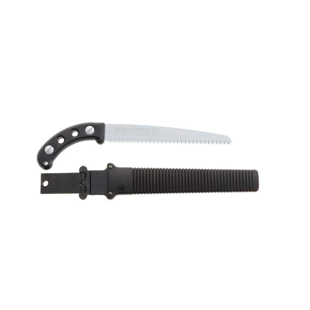 With the Gomatoro Root Cutting Saw, root cutting is made easy without the worry of tool or teeth damage. The Silky 153-24 Gomatoro 9.5 in. Root Cutting Saw is a beautifully-balanced, straight saw with a 9-1/2 in., ultra-strong mono-constructed bade. Featuring a rust-resistant hard chrome-plated (including teeth), taper-ground blade with an impulse-hardened non-set tooth design for greater cutting efficiency. Utilizing proprietary Silky MIRAI-ME Smooth Cutting Technology with razor sharp blades, four cutting angles provide fast, clean and extremely smooth cutting action. The Silky Gomatoro handsaw is a great combination of a high performance blade with an integrated non-slip cushioned comfort rubber handle that really sticks in your hands for a sure grip. A durable red polypropylene sheath with belt clip is included. Ideal for all root cutting tasks.
