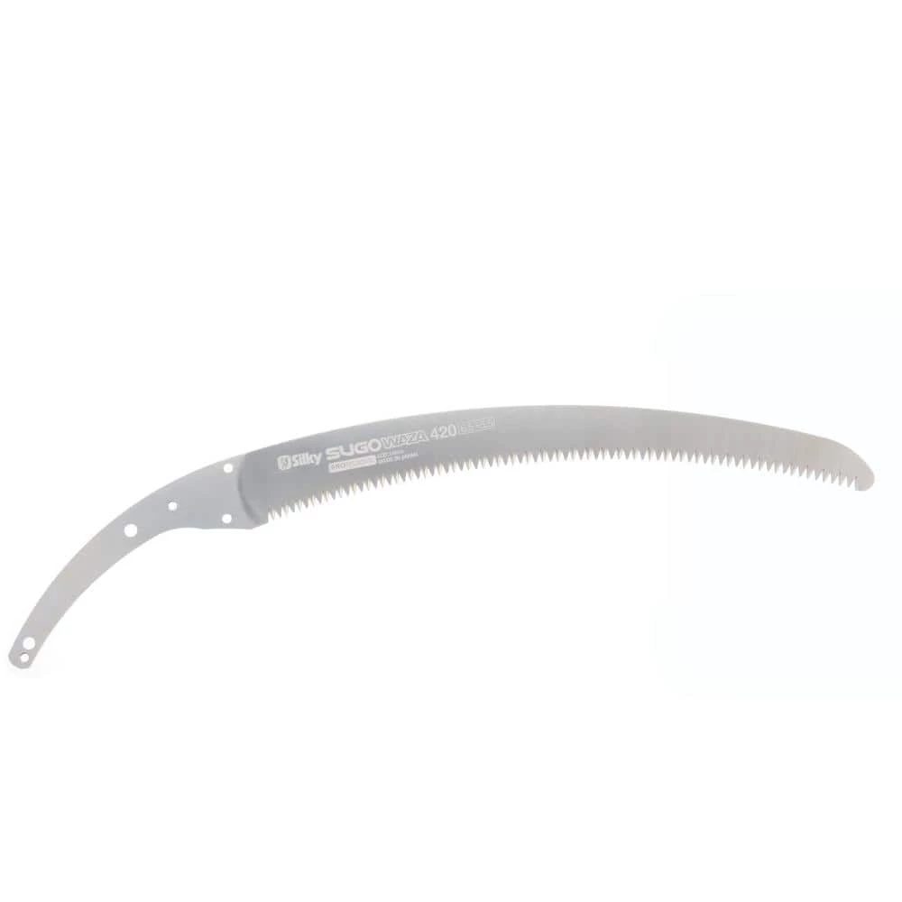Replace your old, dull blade with one that gets the job done every time. The Silky 420-42 SUGOWAZA 16.5 in. Hand Saw Replacement Blade features a special tapered design from the tooth tip to the back spine to reduce resistance and deliver smoother, easier, faster cutting performance. Hard chrome plating produces an exceedingly durable surface which is resistant to rust and the effects of resin. Using Silky’s exclusive MIRAI-ME Smooth Cutting Technology, the SUGOWAZA offers unmatched cutting efficiency and performance. The four cutting angles along the length of the blade leaves a clean, smooth surface. Cuts made on the pull stroke provide maximum control and ergonomic advantage. A mono-constructed blade runs all the way through the handle, eliminating stress and breakage.