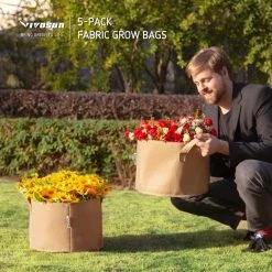 VIVOSUN fabric grow bags readily breathe, keeping roots and soil oxygenated and cool throughout the-year. Great for developing strong, fibrous roots and keeping them healthy without needing regular root pruning. Thickened 300 g nonwoven fabric means your grow bags easily stand upright making it easy to fill the bag by yourself. These grow bags provide excellent air circulation and drainage: do not worry about overwatering.