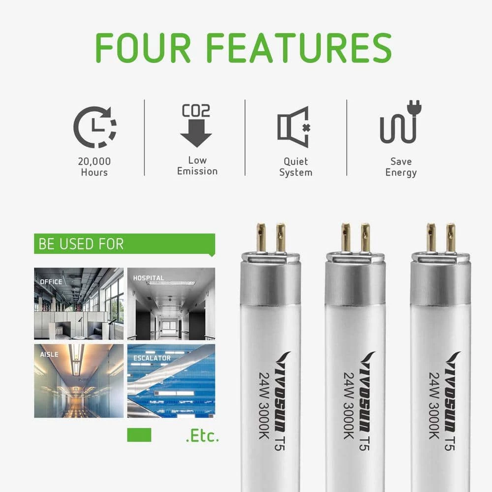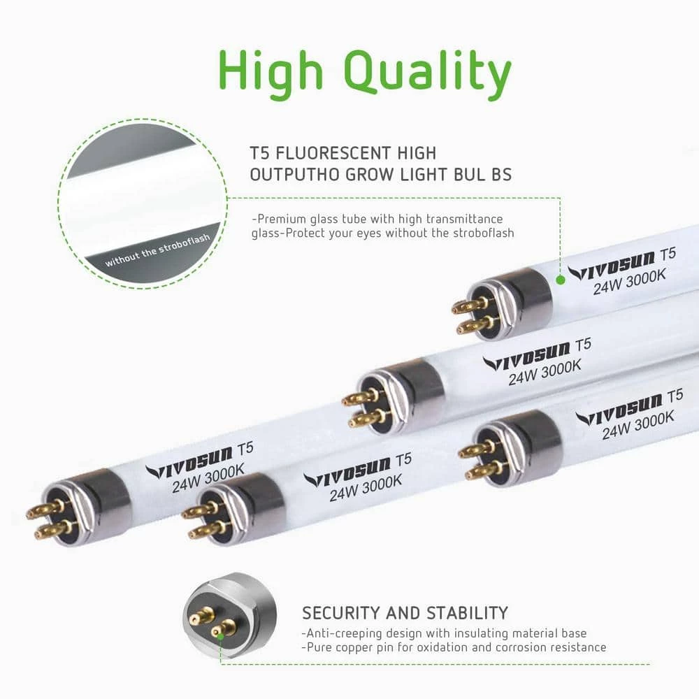 - VIVOSUN T5 lamps emit a balanced red and orange spectrum at 3000K to enhance budding and fuel a bountiful harvest