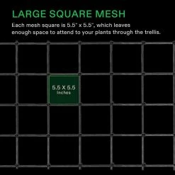 - Each trellis square is 5.5 in. x 5.5 in., but the knots can slide in any direction to fit your plant growth exactly