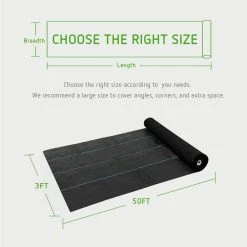 - Our heavy-duty garden fabric mat is 3 ft. in width by 50 ft. in length and you can cut it to whatever size you need