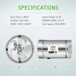 VIVOSUN inline duct fan helps with ventilation issues. This duct booster fan is perfect for boosting airflow in long runs of ducting. Tight, precise construction eliminates rattling and reduces wear and tear to give the element a long life. It is used as intake fan to bring fresh air into grow rooms, also used as exhaust fan in smaller setups with LEDs or Lights under 400-Watt.