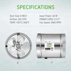 VIVOSUN inline duct fan helps with ventilation issues. This duct booster fan is perfect for boosting airflow in long runs of ducting. Tight, precise construction eliminates rattling and reduces wear and tear to give the element a long life. It is used as intake fan to bring fresh air into grow rooms, also used as exhaust fan in smaller setups with LEDs or Lights under 400-Watt.