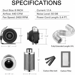 VIVOSUN inline duct fan helps with ventilation issues. This duct booster fan is perfect for boosting airflow in long runs of ducting. Tight, precise construction eliminates rattling and reduces wear and tear to give the element a long life. It is used as intake fan to bring fresh air into grow rooms, also used as exhaust fan in smaller setups with LEDs or Lights under 400-Watt.
